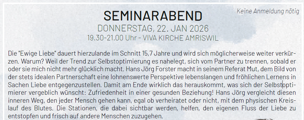 Hans Jörg Forster ist überzeugt: Eine erfüllte Partnerschaft hat mehr mit mir selbst zu tun als mit den Eigenarten meines Partners. In seinem neuen Buch «Eure Partnerschaft. Deine Herzenssache.» (Januar 2025) beschreibt er den «Herzkreislauf der Liebe». Er macht Mut, gerade in Krisen bei sich selbst anzufangen, damit Liebe wachsen kann – eine erfrischende Perspektive für jede Beziehung.